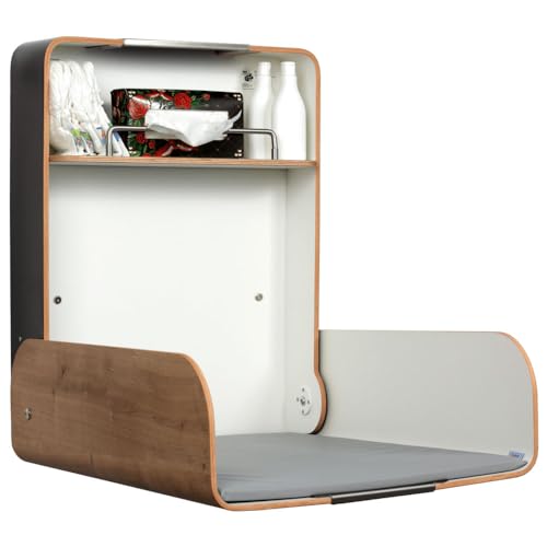 KEMMLIT Toledo – Cambiador de pared (madera de roble, plegable, ahorra espacio, incluye cambiador gris, estantería para cambiar pañales de pared para áreas públicas y privadas), TÜV, estación de